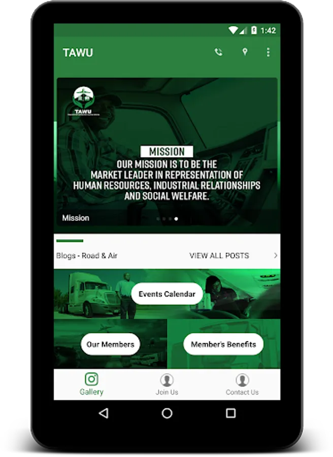 TAWU app is a union based social app, provided by the Union to assist its efforts in becoming a market leader in representation of human resources, industrial relationships and social welfare as it tries to provide quality services in representation of its members in the air and road division.