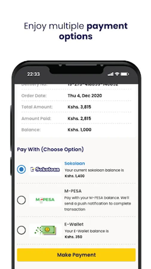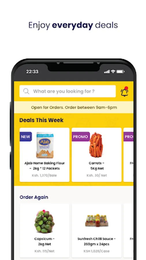 Twiga - Soko Yetu Android App brings Twiga Foods' self ordering platform closer to you. With only a tap of the app you can access features such as placing orders, viewing deliveries made to you and making your payments to Twiga among other features.