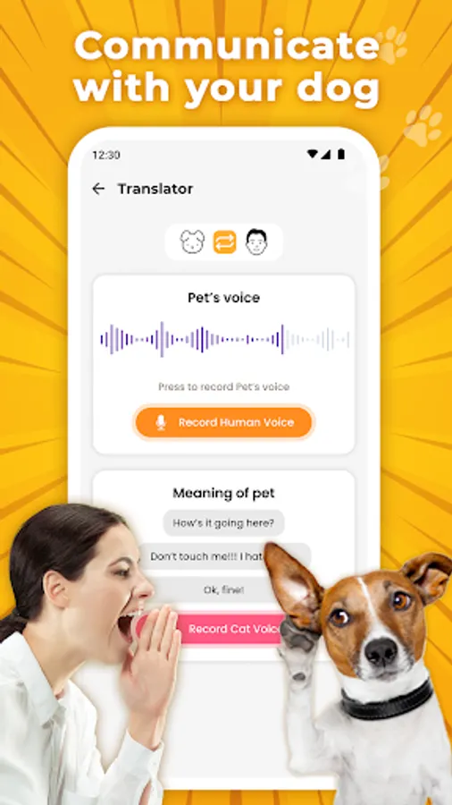 Want to talk to your furry friend like never before? Look no further! Our dog translator app lets you translate your voice into dog language and communicate with your pet! Plus, with the ability to play dog or cat sounds, you can prank and entertain your pet for hours on end.