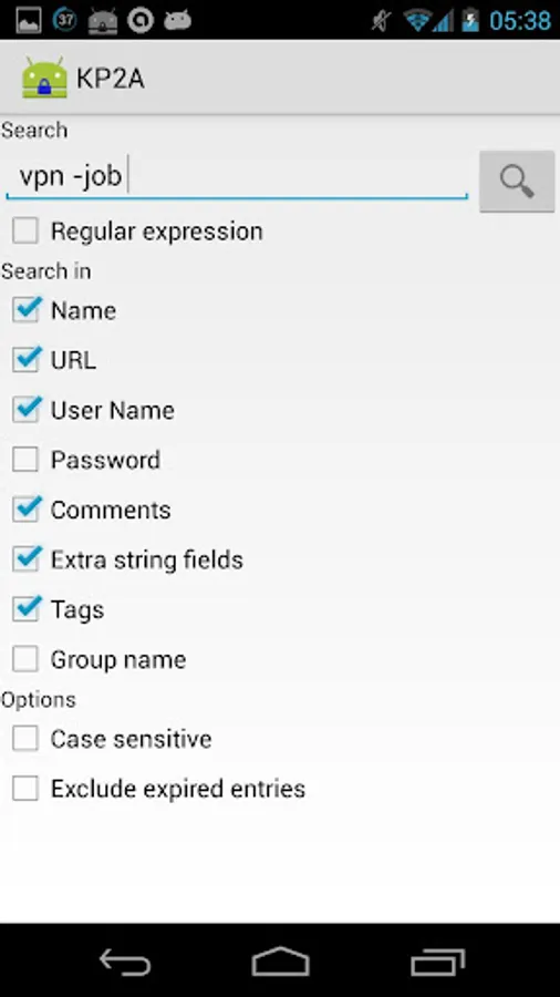 * search dialog with all search options from KeePass 2.x.