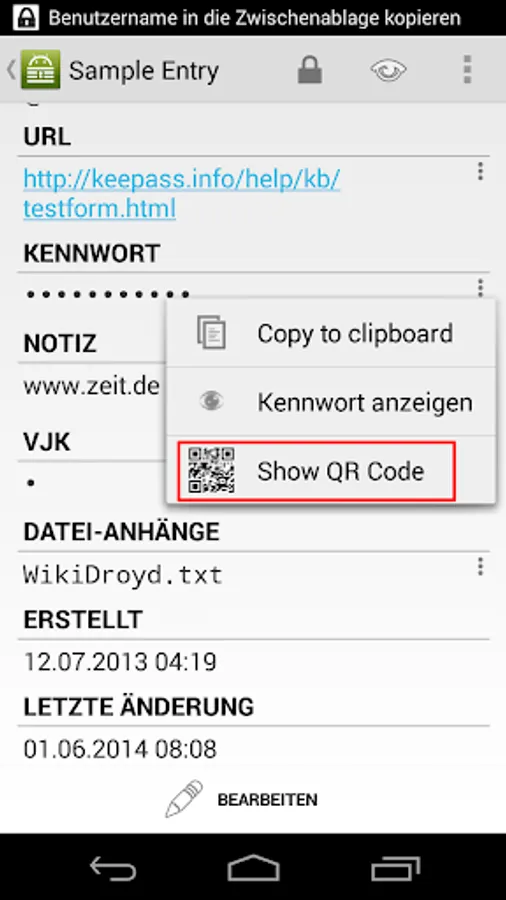- display passwords, usernames etc. (or the full entry) as a QR code