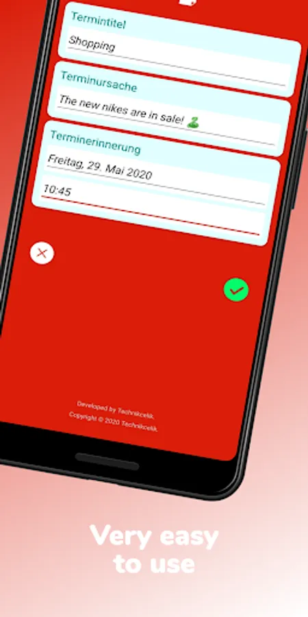This simple app helps you to enter your important appointments, reminders or birthdays very quickly and, above all, easily, without unnecessary information or settings.