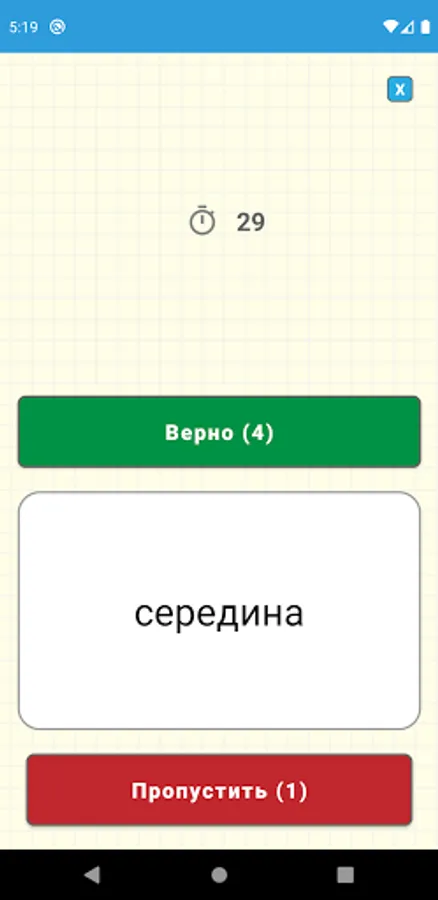 The application has the ability to play both with built-in dictionaries, and with your own dictionary, which is collected by all participants before the game (according to the rules of the game "Hat"). The topics of such a dictionary can be different: characters, scientific terms, words from some area of knowledge, or just any words as agreed by the players.