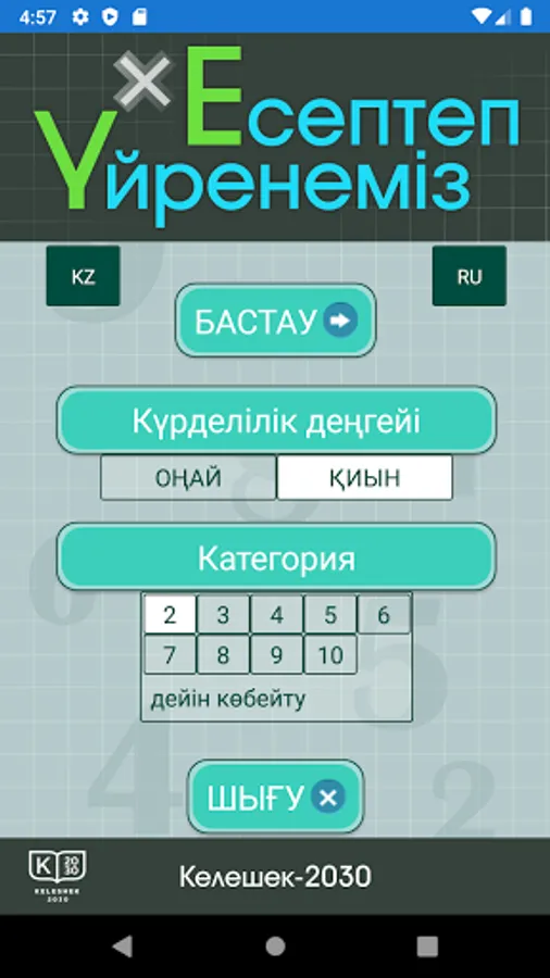 Қосымшаның мәні - балаларға 100 көлемінде есептеу дағдыларын жаттықтыруға көмектесу. Мобильді қосымша жауаптардың дұрыстығын тексереді. Жаттықтырғыштың жеңіл немесе күрделі нұсқасын таңдауға болады.