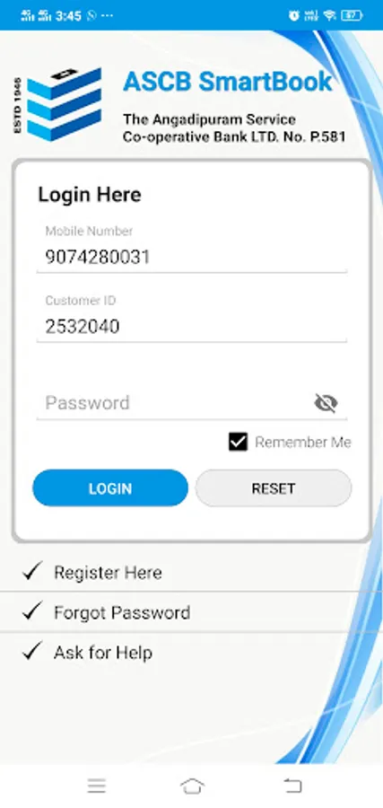 The Complete Mobile Passbook application for the Angadipuram Service Co-operative Bank