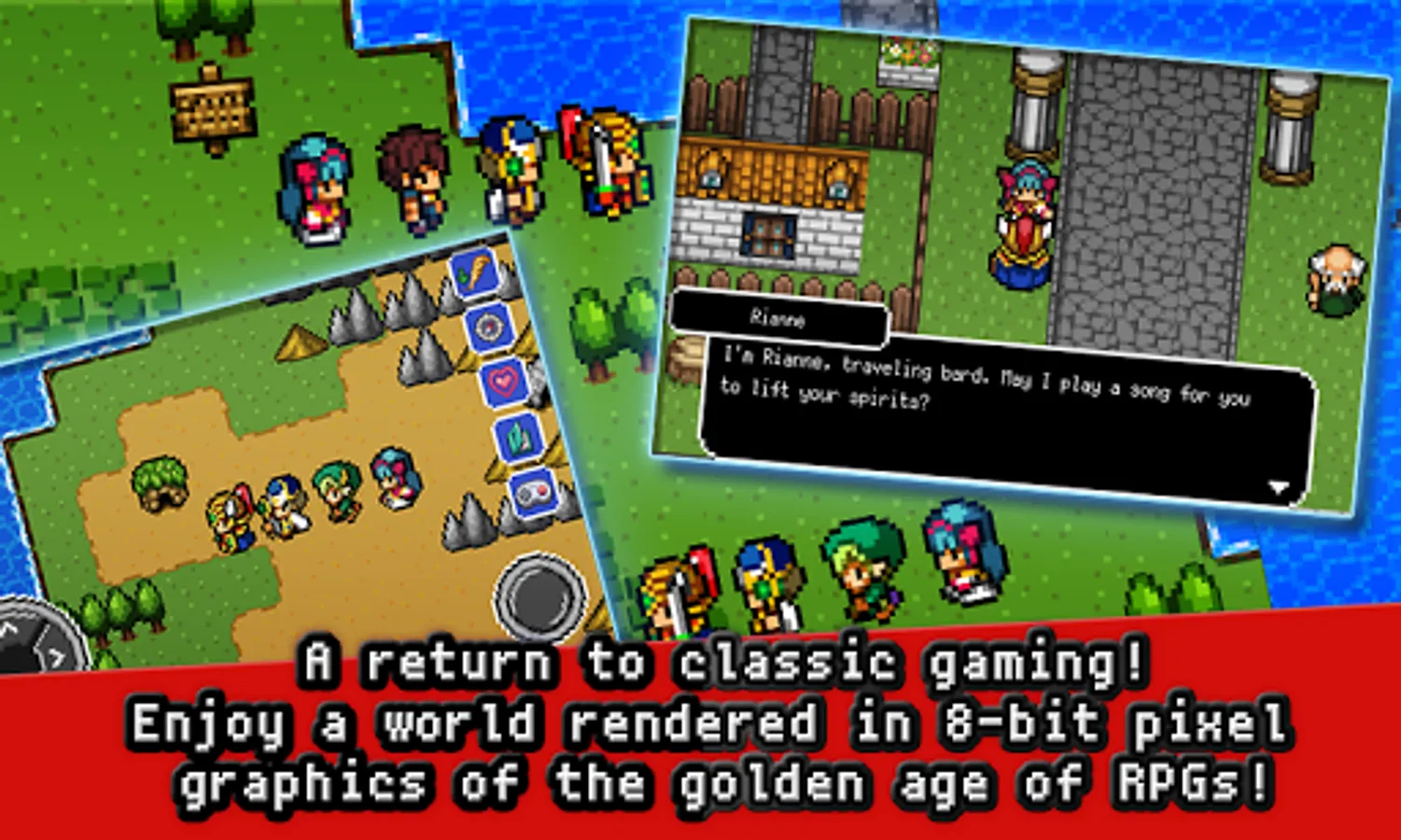 Experience the golden age of 8-bit graphics and sound in an all-new retro style RPG adventure!