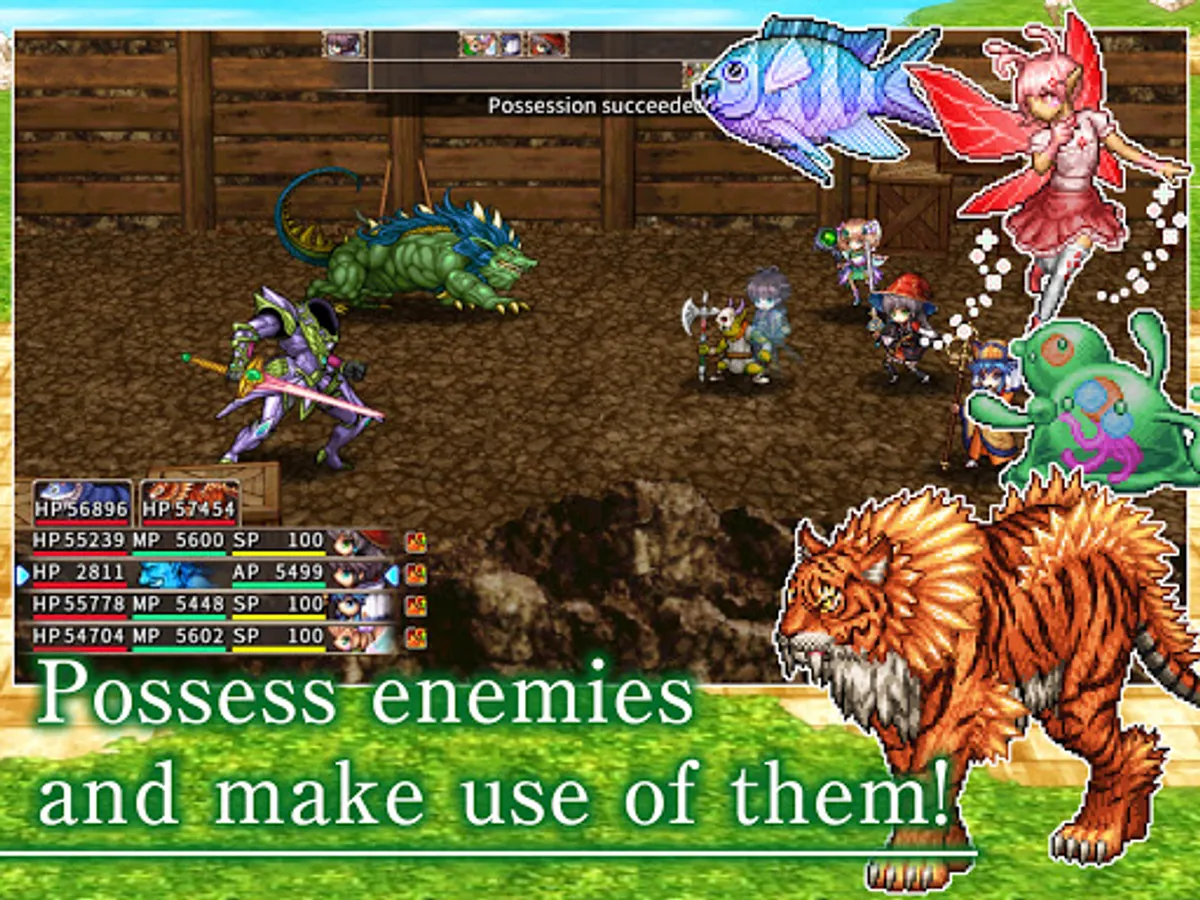 Possess looming enemies and summon spirits to support you in turn-based battles with outstanding animations! Take on missions in the Guild to raise your rank, and upgrade weapons to become more powerful. More enjoyment awaits you in this fateful RPG!