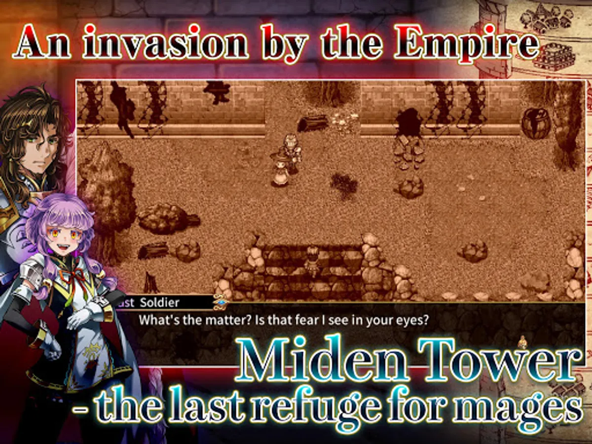 Miden Tower is a fantasy RPG with a compelling and dramatic story. After Miden Tower is invaded by the Alroval Empire, the mages who call it home find themselves cornered on its upper floors. This sets in motion a series of tragic events that lead to a counteroffensive being launched to take back the tower and to get revenge for the wrongs committed against them.