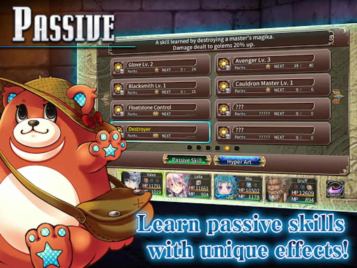 The heroine is an actual wall that provides support to the main characters by merging with walls or acting as a wind breaker if needed. Turn-based battles can be engaged with 3x3 grid battles by using skills with different effects or by summoning golems to take down your foes. Alchemize items, learn passive skills and enjoy the tons of quests and extra enjoyment that await in this magical adventure!