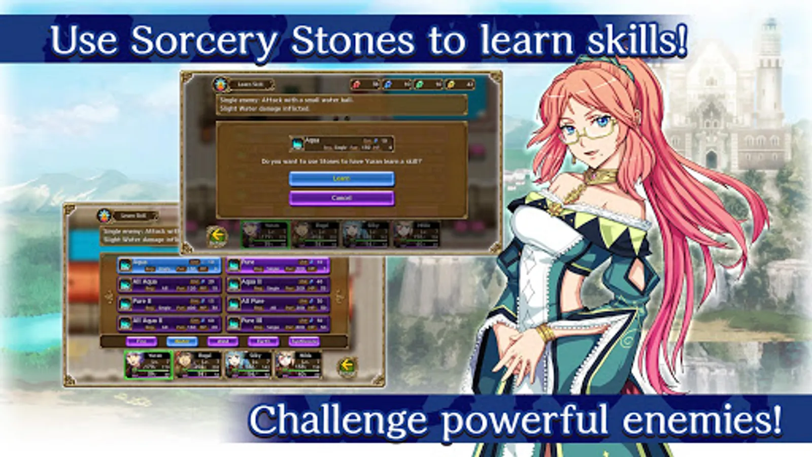 - Destroy and challenge hordes of enemies in turn-based battles!