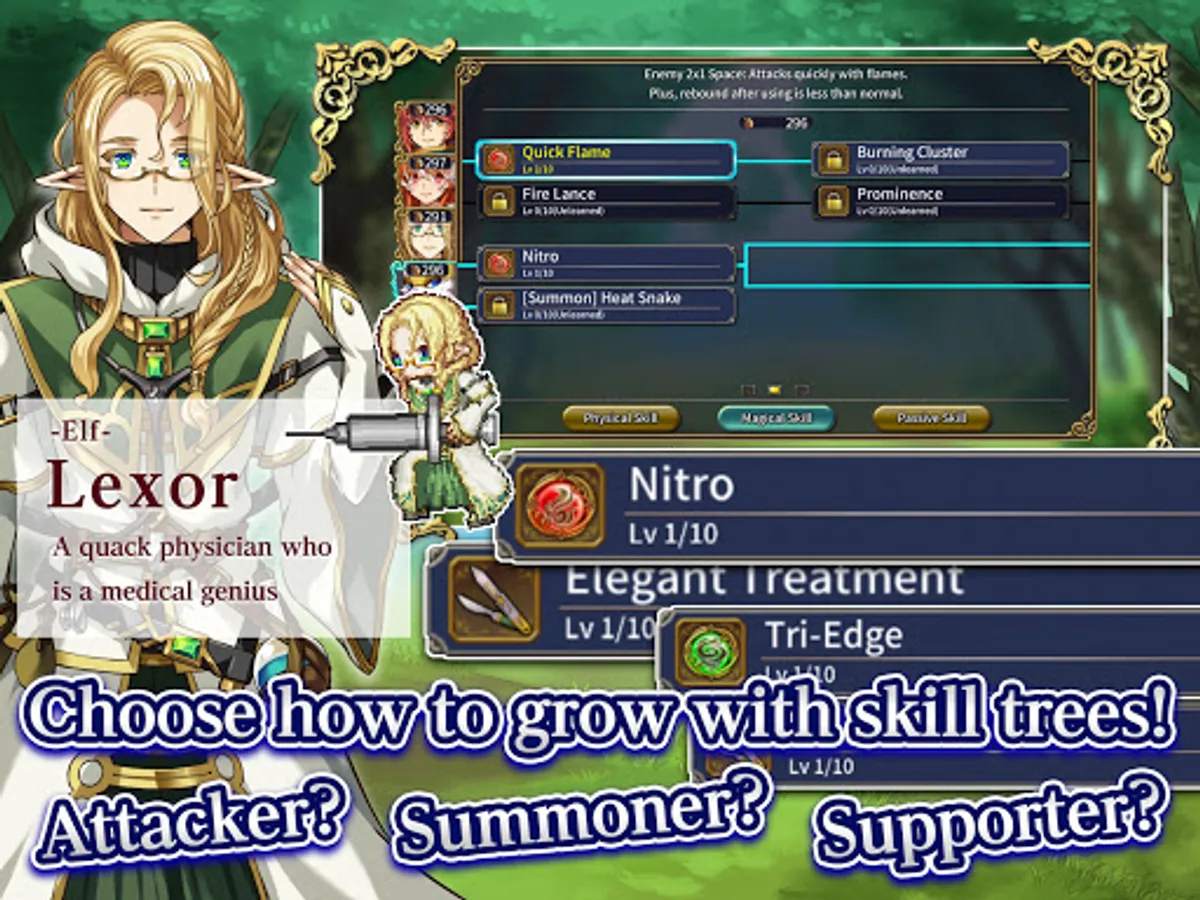 Use the skill tree to allocate skill points and focus on mastering a single skill or a variety of magic. With plenty of unique bosses to go around, and powerful equipment dropped by enemies in turn-based battles, challenges are unlimited.