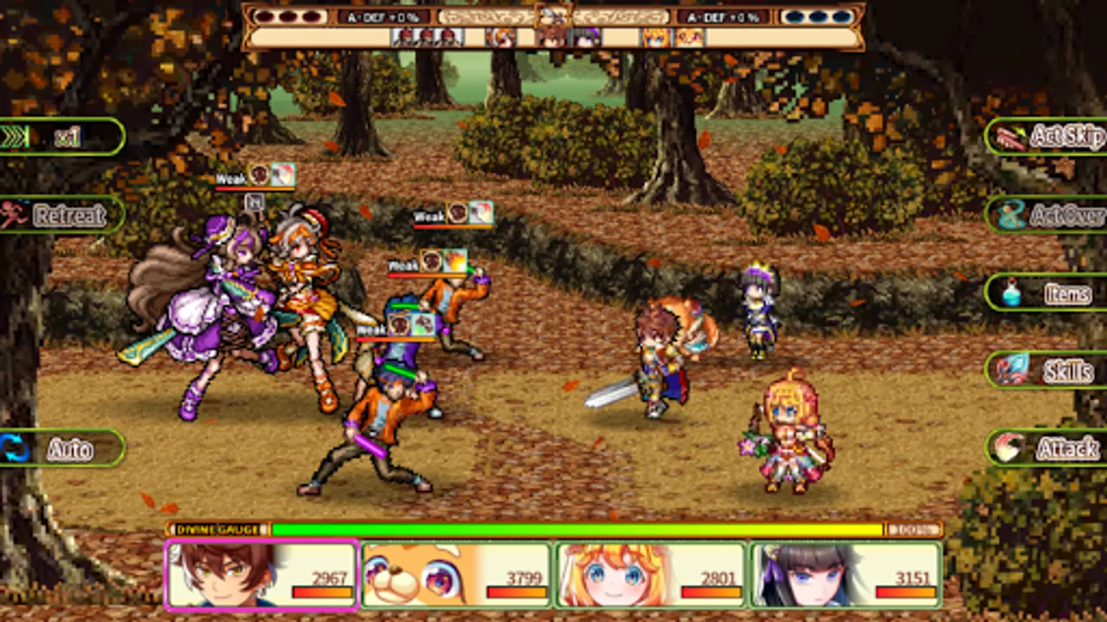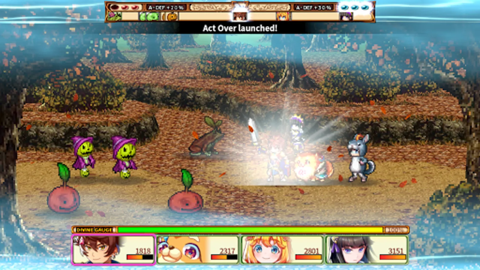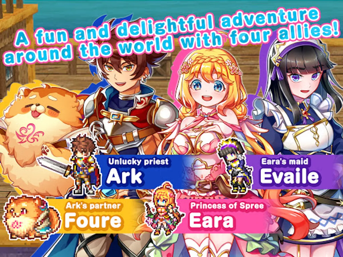 Make use of up to three roles per character to enjoy the variety in skills, effects and even costumes. In turn-based battles you can charge special orbs to use Act Over and launch up to four continuous actions. It's fun just to watch the charm of pixel arts in this fantasy JRPG!