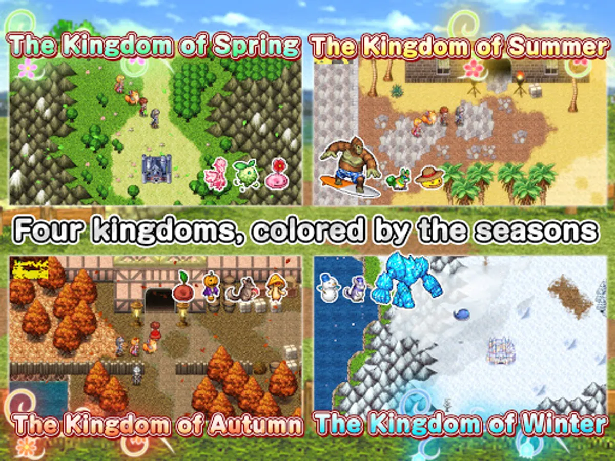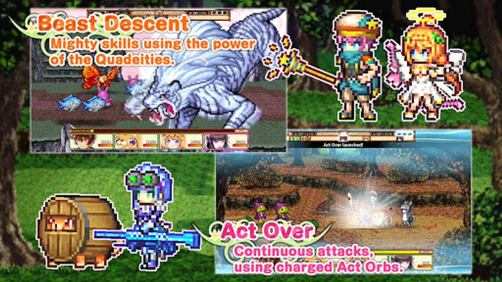 Make use of up to three roles per character to enjoy the variety in skills, effects and even costumes. In turn-based battles you can charge special orbs to use Act Over and launch up to four continuous actions. It's fun just to watch the charm of pixel arts in this fantasy JRPG!
