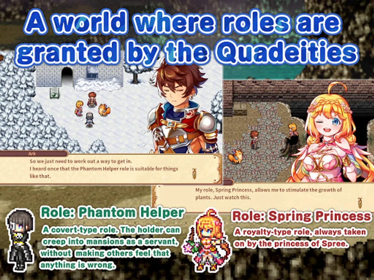 In a world with four kingdoms, each colored by a season, where roles are granted by the Quadeities, strange happenings suddenly threaten the peace there. A quest begins to find each one's calling in this intrigued fate and journey through the kingdoms to get to the bottom of the mystery!