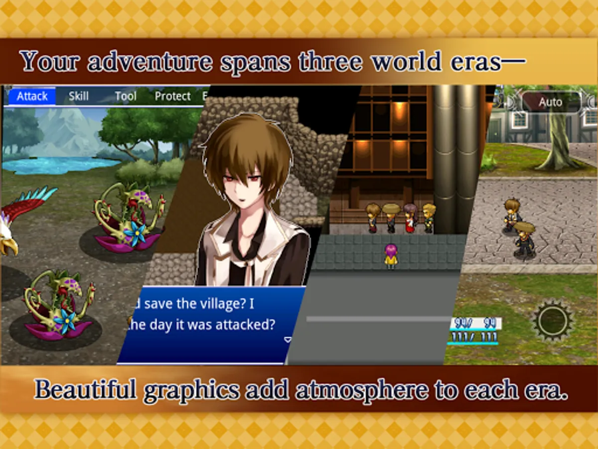 For Android, the graphics were newly drawn at higher resolution! You'll enjoy the more detailed world of “Aeon Avenger.”