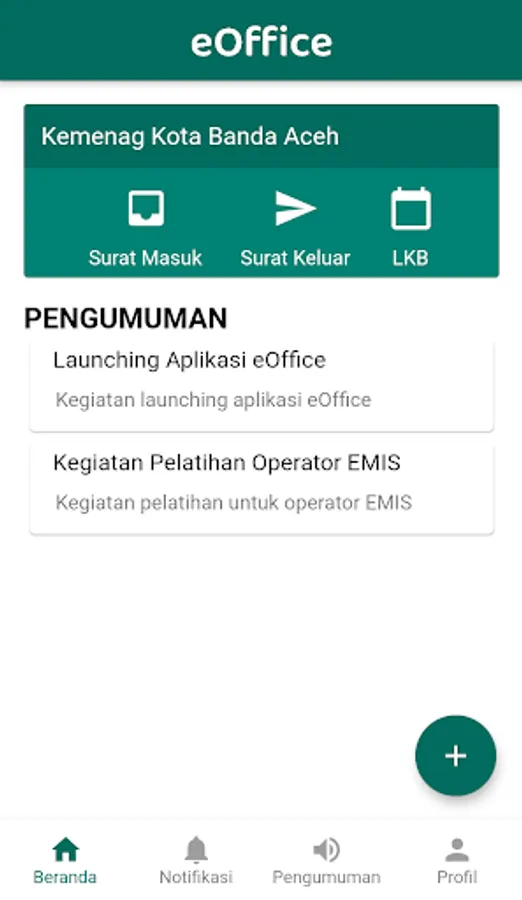The eOffice of the Ministry of Religion of Banda Aceh City is an application used to manage electronic correspondence (Paperless). This application helps manage records or documents digitally and automatically.