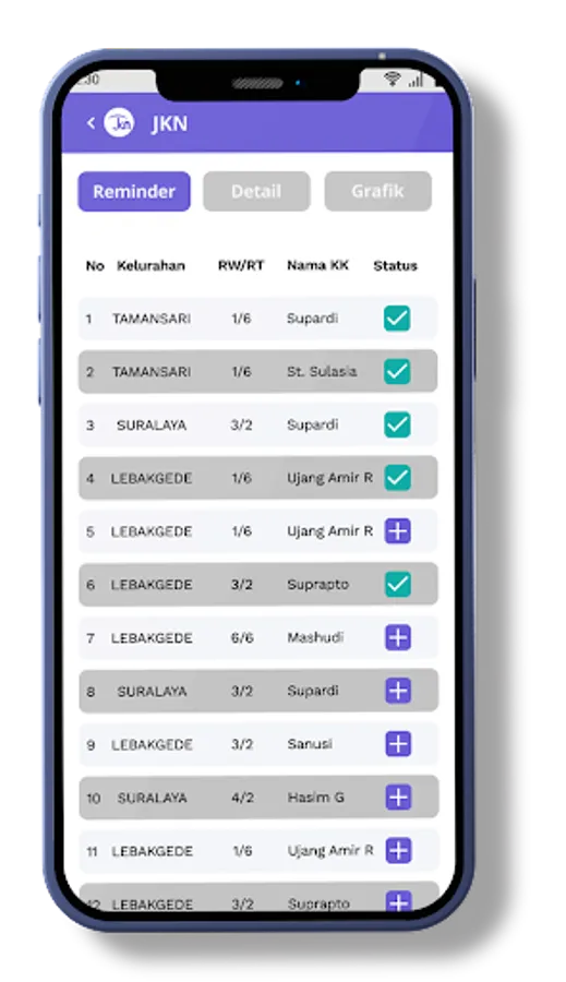 Health monitoring for health center health workers in each province. Equipped with a remainder feature for each activity / agenda