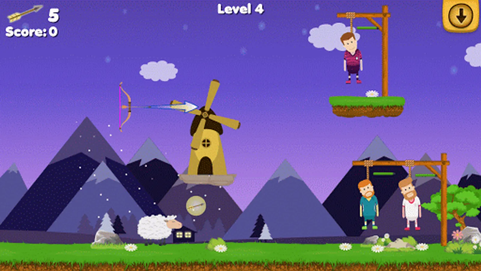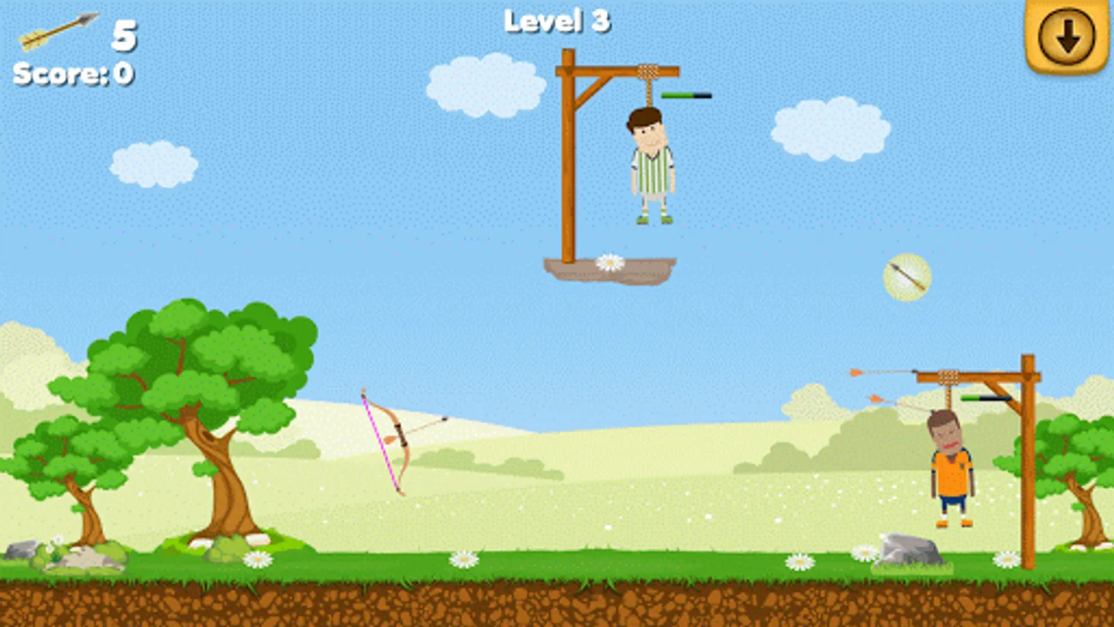 You must save man from hanging on rope using your bow and arrow in cut the rope game.