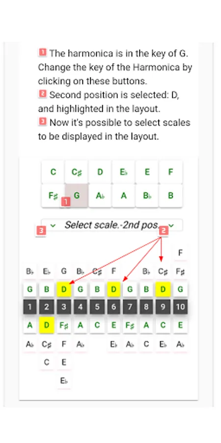 Even though the diatonic harmonica is designed to play in a single key; all the twelve chromatic tones can be played; and can be used to build scales up on. In other words: One scale can be played in 12 different keys on one harmonica. HarmonicaScaler works with 22 different scales. So over twelve keys the possible number of scales that can be displayed are: