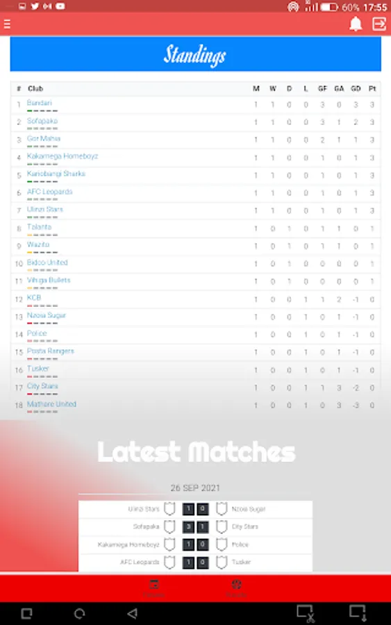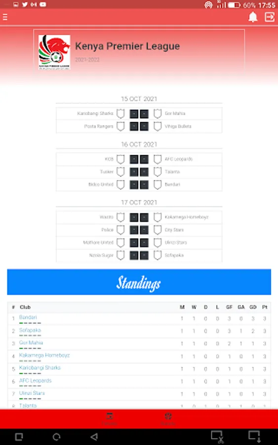 This app will offer you with updates of Kenya main soccer league, you will get to know the results, upcoming fixtures, goals scorers, table standing.