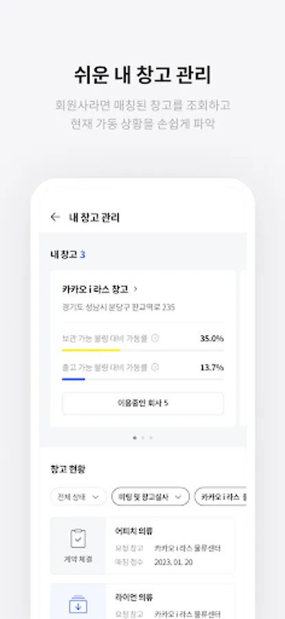 - Automatic calculation of storage/shipment utilization rate for each warehouse