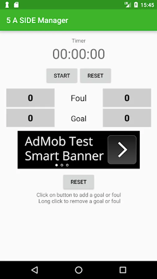 5-a-side football manager include a chronometer, a counter of fouls and a counter of goals.