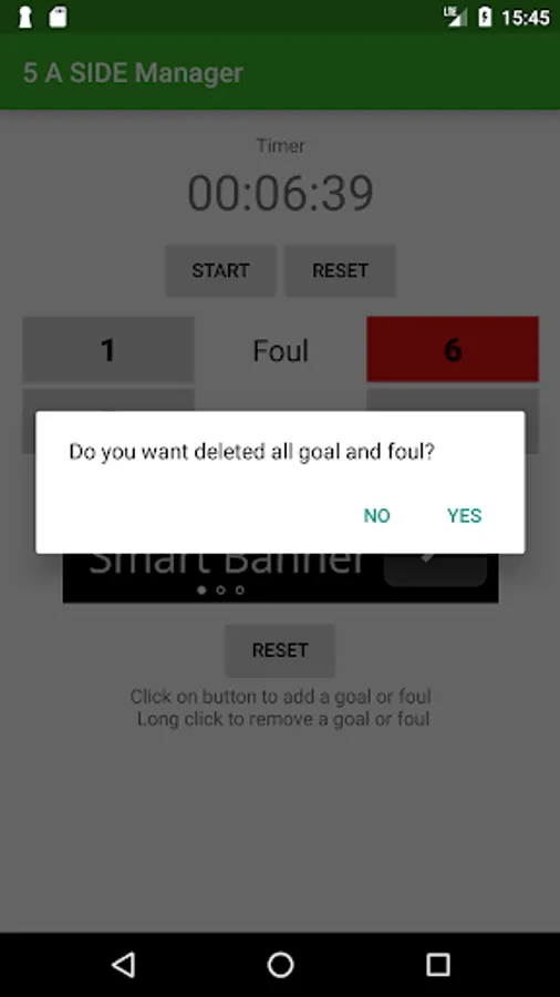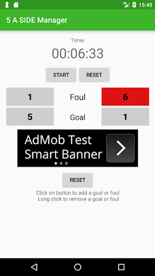 Execute a shorten click over the number of fouls or goals, they will increase by one, while executing a long click they will decrease by one.