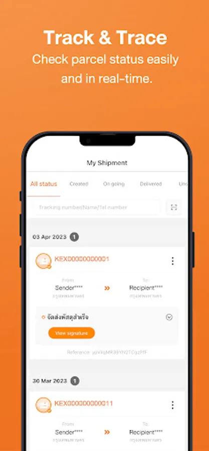 Tracking – scan QR code on the receipt or input consignment number and track shipment statuses, get notification whenever shipment status is updated;