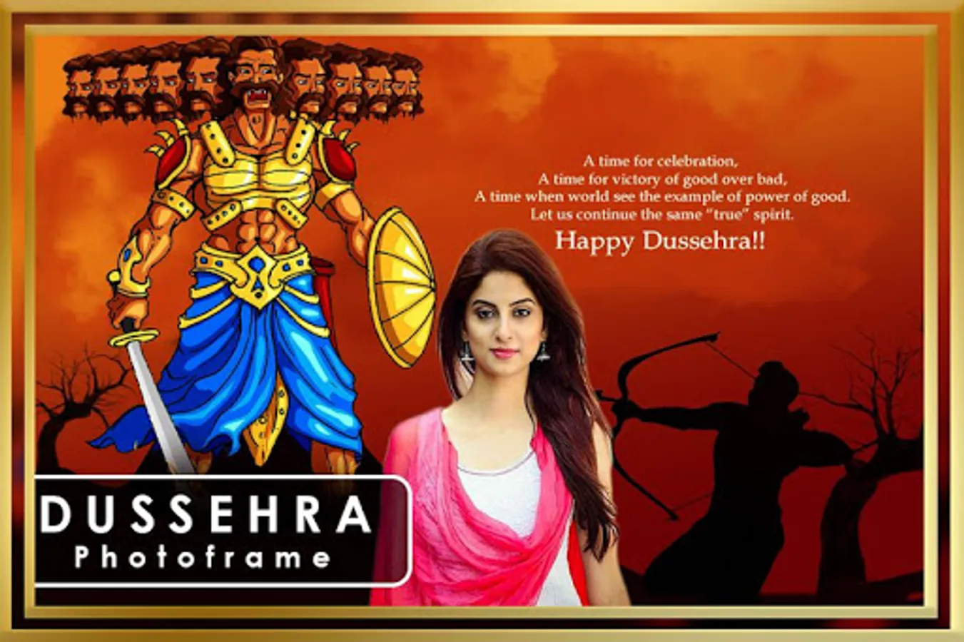 Dussehra Photo Frames is one of the great collection of frames for your photos. Stitch your Photos with beautiful HD Dussehra photo Frames and prepare it for your memories and make them unforgettable. Using Dussehra Photo Frames make photo more stylist by some creative text and stickers.