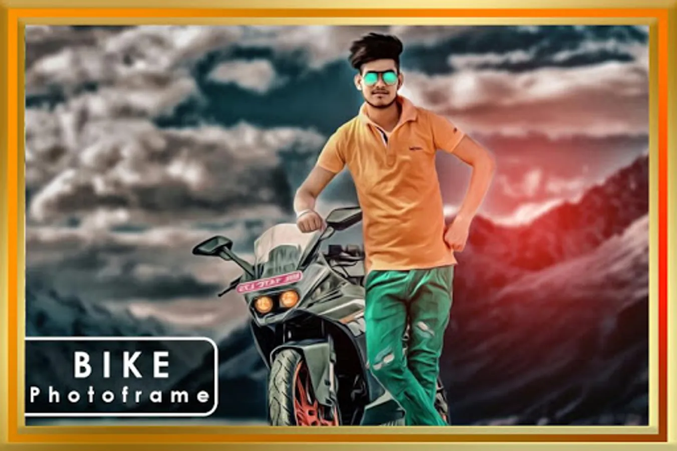 Bike Photo Frame free app with burning bike picture frames free download and you'll definitely enjoy this best picture editor. Try out new Racing Bike Photo Frame for couples from this collection that will intensify your feelings