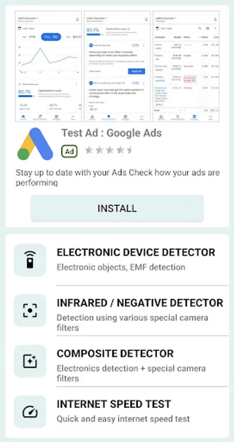 The composite detector function provided by this app is a convenient and reasonable detection method that is not available in other apps. Users can conveniently check the reaction of the electronic device detector while watching the video captured by the phone’s camera.