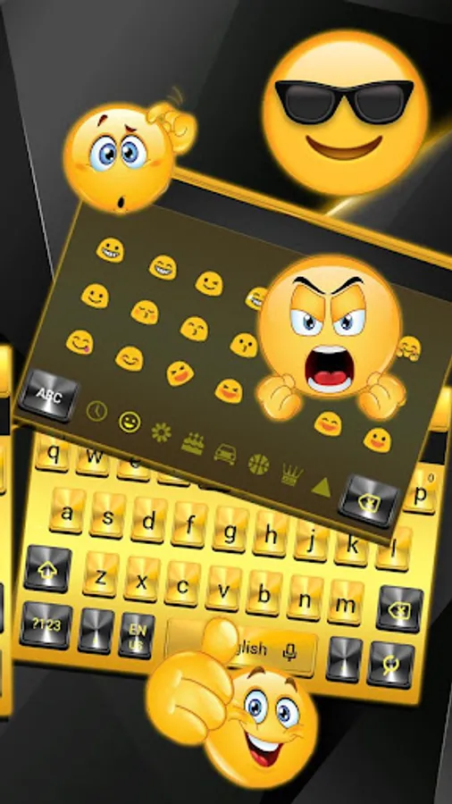 🙋More than 1,000 emojis are available for you. Black and Golden Keys keyboard will help you express different moods since there are thousands of diversified emojis.