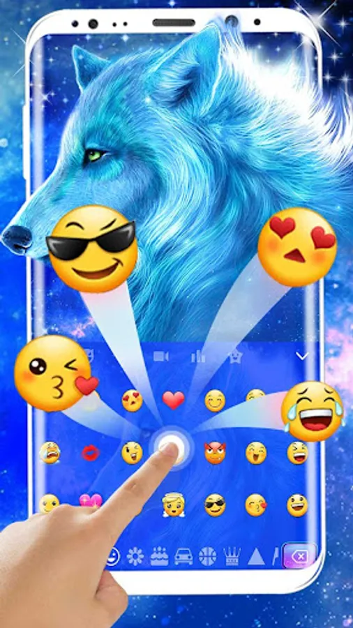 🙋More than 1,000 emojis are available for you. Cyan Neon Wolf keyboard will help you express different moods since there are thousands of diversified emojis.