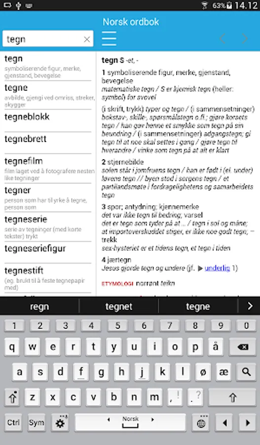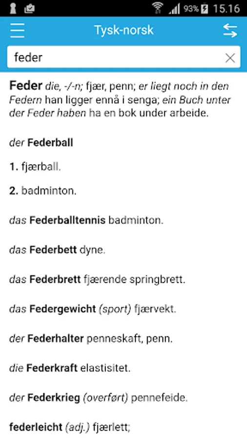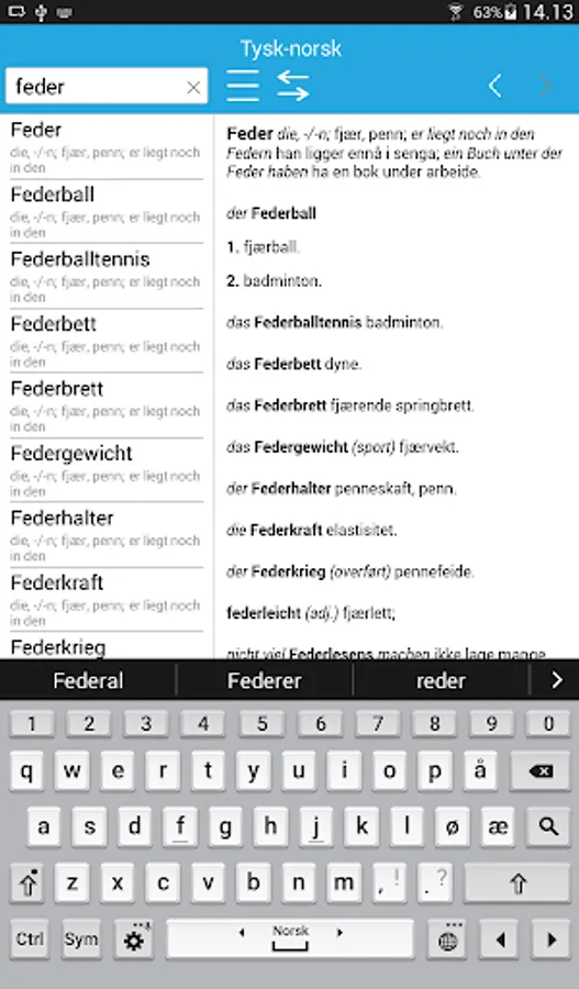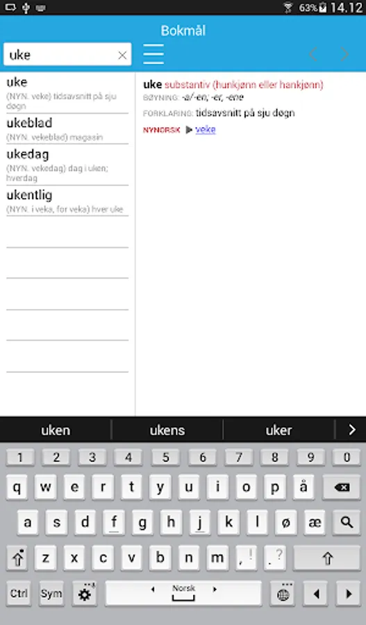 With the app from Ordnett get access to dictionaries for Norwegian and other languages right from your Android device. With this app you can look up in a dictionary without having access to the Internet - all dictionaries installed on your device.