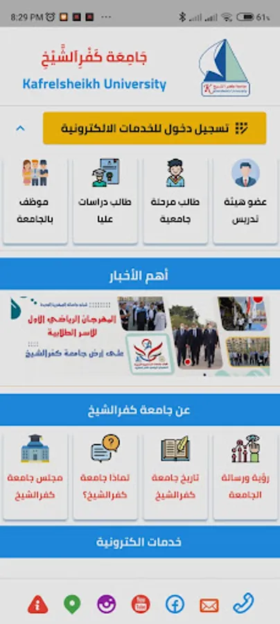 The Kafrelsheikh University application is a comprehensive application for the services and news of Kafrelsheikh University, as it presents the latest and most important news of Kafr El-Sheikh University that pertains to students, faculty members, and those interested in Kafr El-Sheikh University, in addition to logging in to the various electronic services that concern students, employees, and faculty members at Kafrelsheikh University.