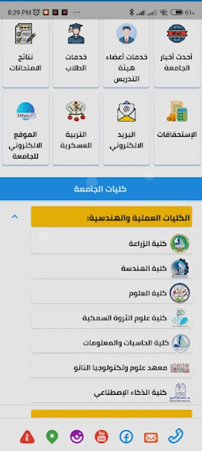In addition to displaying the official social networking sites of the university and its various faculties and locating them on Google Maps for easy access