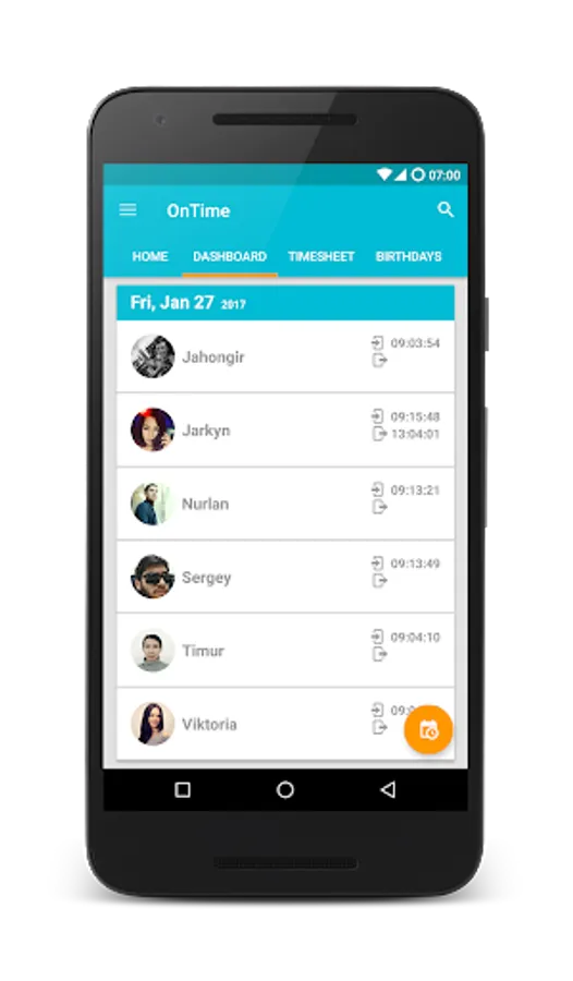 Ontime allows you to keep track of your employee’s attendance and work hours. All logs are stored in web server and shows in application. You can easily create profiles for employees with their personal information and timesheet.
