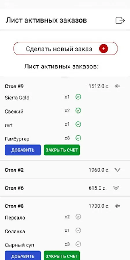 Each user has their own personal account: username and password. For the waiter and administrator, this is an easy-to-use Android application; for the cook / bartender, this is the WEB version with minimal options.