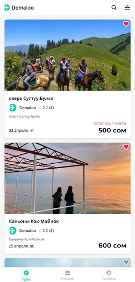 Demaloo is a handy tour booking app. Here, you will quickly find a tour of your interests, and just as quickly you can book it, you will be in touch with the tour operator, and also always be notified of all changes to your tour.