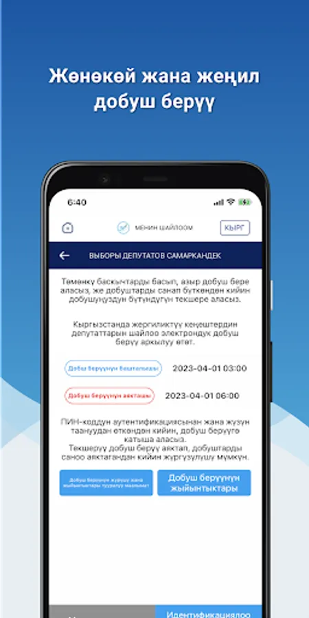 The application offers a user-friendly interface and intuitive controls for voter convenience. Voters can pass biometric identification and vote in the application, as well as get information about the progress of voting and information about candidates in the form of a schedule.