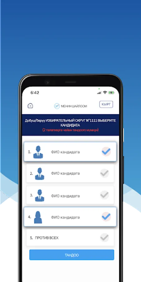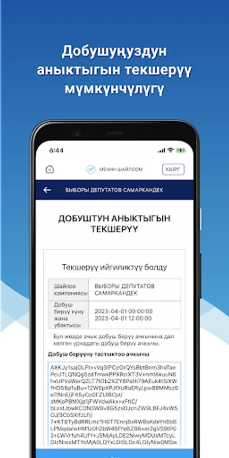 Through these functions, the electronic voting application of the CEC allows all citizens of Kyrgyzstan to participate in the election, even if they are not at the polling station at their registered place. In addition, the application includes a secure system for handling personal data, prevents inappropriate behavior and provides a safe and secure voting environment.