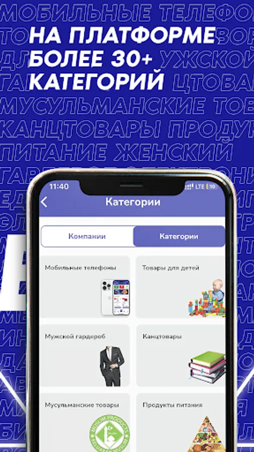 В приложении можно заказать всё, что вам нужно: продукты питания, фрукты, овощи, технику, автотовары, мусульманские товары, строительство и ремонт, еда, женская одежда, домашний интерьер, красота и здоровье, подарки, детские товары и детское питание, игрушки, канцтовары, книги, одежду и обувь, товары для дома и сада и различные услуги.
