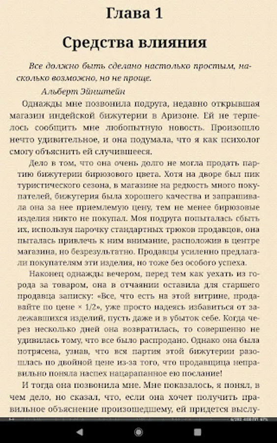 A classic of business literature, a world bestseller and a handbook of ambitious politicians, managers, advertisers, marketers, and anyone who wants to convince and pursue their own. The author of the book, Ph.D. and professor of psychology, Robert B. Cialdini, has studied the principles of successful sales for many years. Based on his research, he wrote a guide to motivation and conviction, which many authoritative periodicals recognized as the best book on influence ever published.