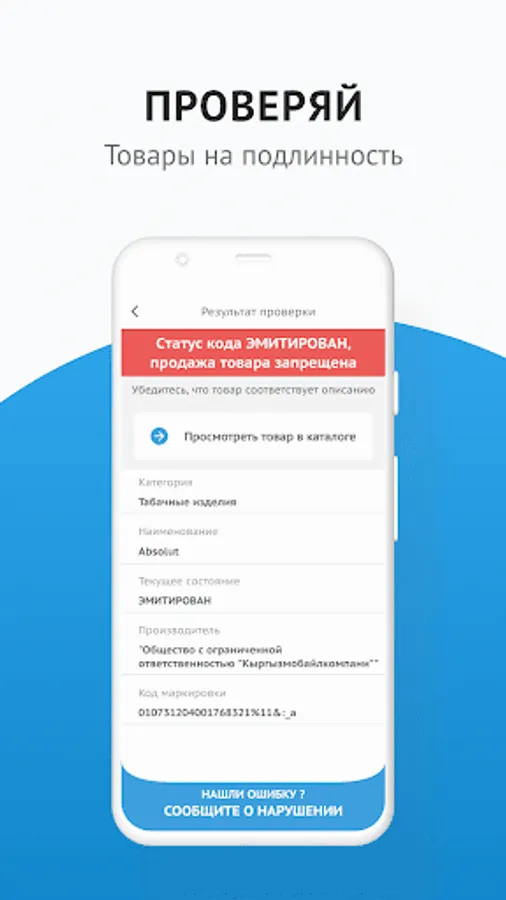 Mobile application for scanning alcohol and tobacco labeling codes in order to detect violations.