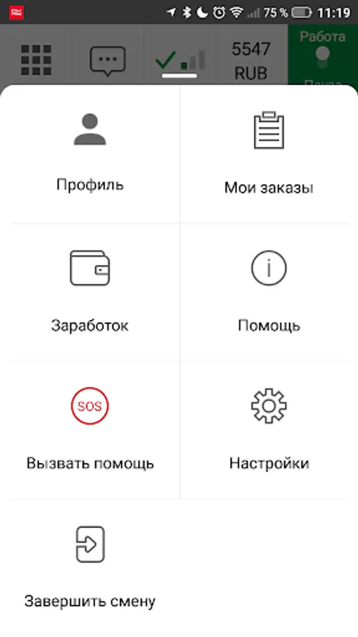 - When you are on shift, the application works even in minimized mode: it determines the location using GPS / Glonass, in the taximeter mode, the cost of the order is calculated;