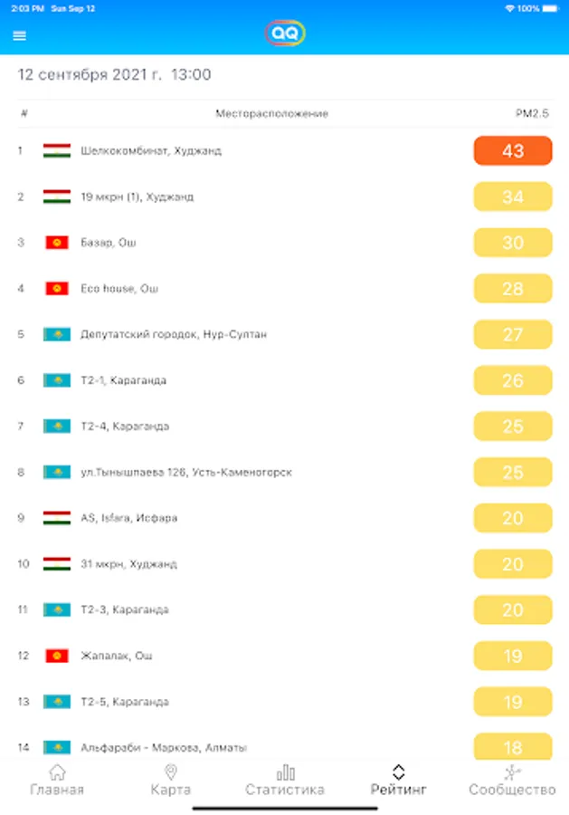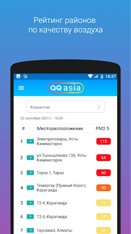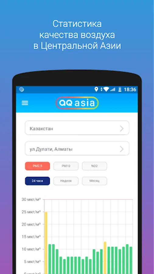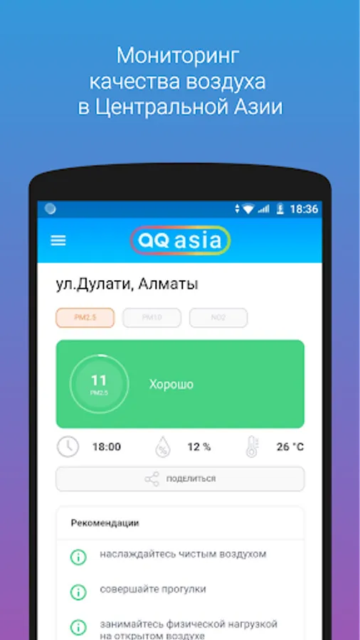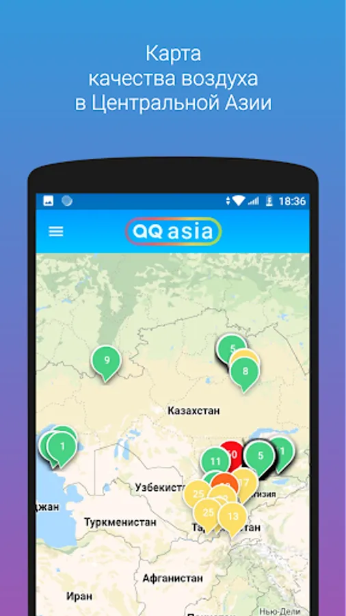 The aqca.asia mobile application was developed by the NGO MoveGreen to inform Central Asians about air quality in real time.