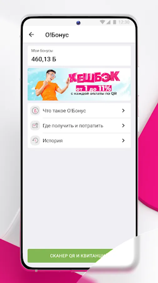 When paying via O!Dengi, you can receive bonuses per QR payment, collect them and then use them to pay your bills and buys with the bonus program partners.