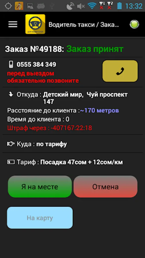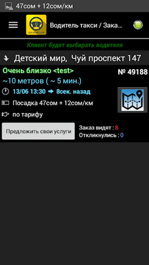 for our taxi service is not required to come to ofis.Skachivaete our application and can take zakazy.takzhe the program has a counter for taking orders "from the board."