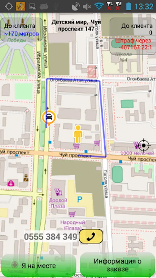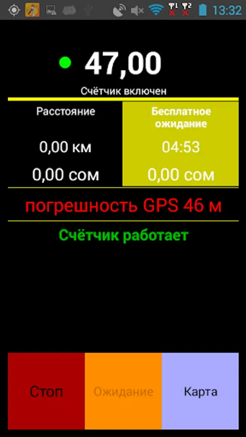 The program has a counter (to calculate the cost of any trip), and also shows the location of the client.