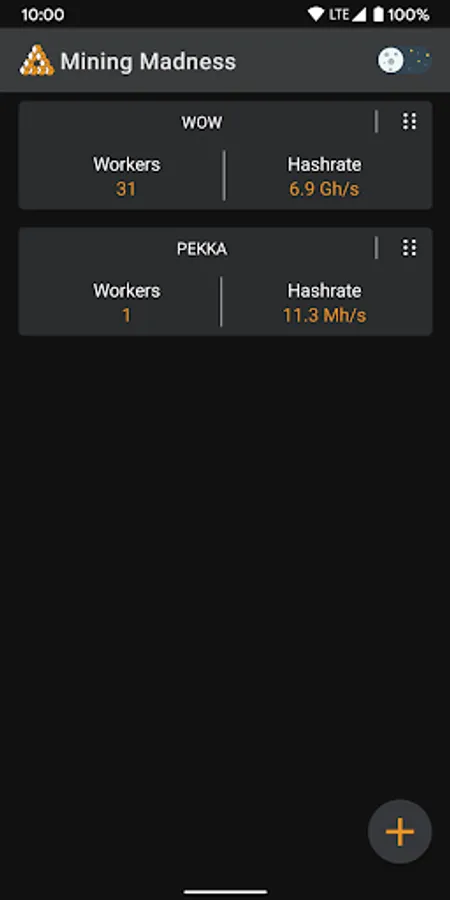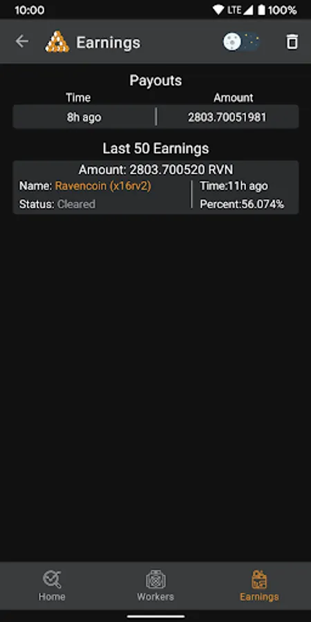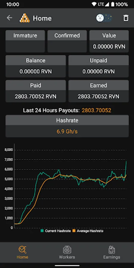 - Overall wallet hashrate as well as individual hashrate per worker;